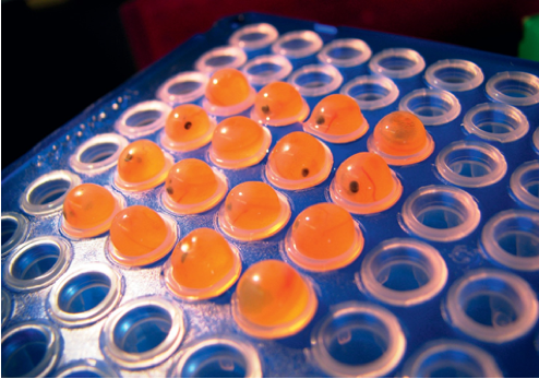 By chance, one of the team’s researchers had access to the growth hormone gene from Chinook salmon. Another researcher had identified the DNA sequence from the Ocean pout (Zoarces americanus) that acts like an ‘on-switch’ to regulate the production of antifreeze proteins. A genetic construct comprised of the ‘on-switch’ and the gene that produces growth hormone was microinjected into fertilized eggs of Atlantic salmon.