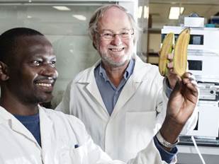 Vitamin A deficiency is a serious health concern in developing countries. The lack of vitamin A can cause blindness, and it can even be fatal. James Dale, an Australian scientist, developed a GMO banana that produces large amounts of beta-carotene, which then turns into vitamin A.