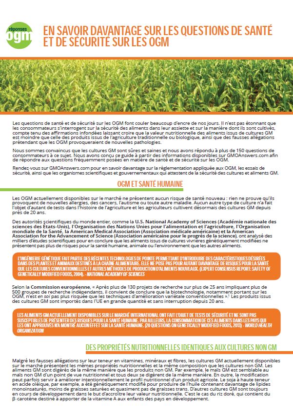 Get To Know The Health And Safety of GMOs (FRENCH)